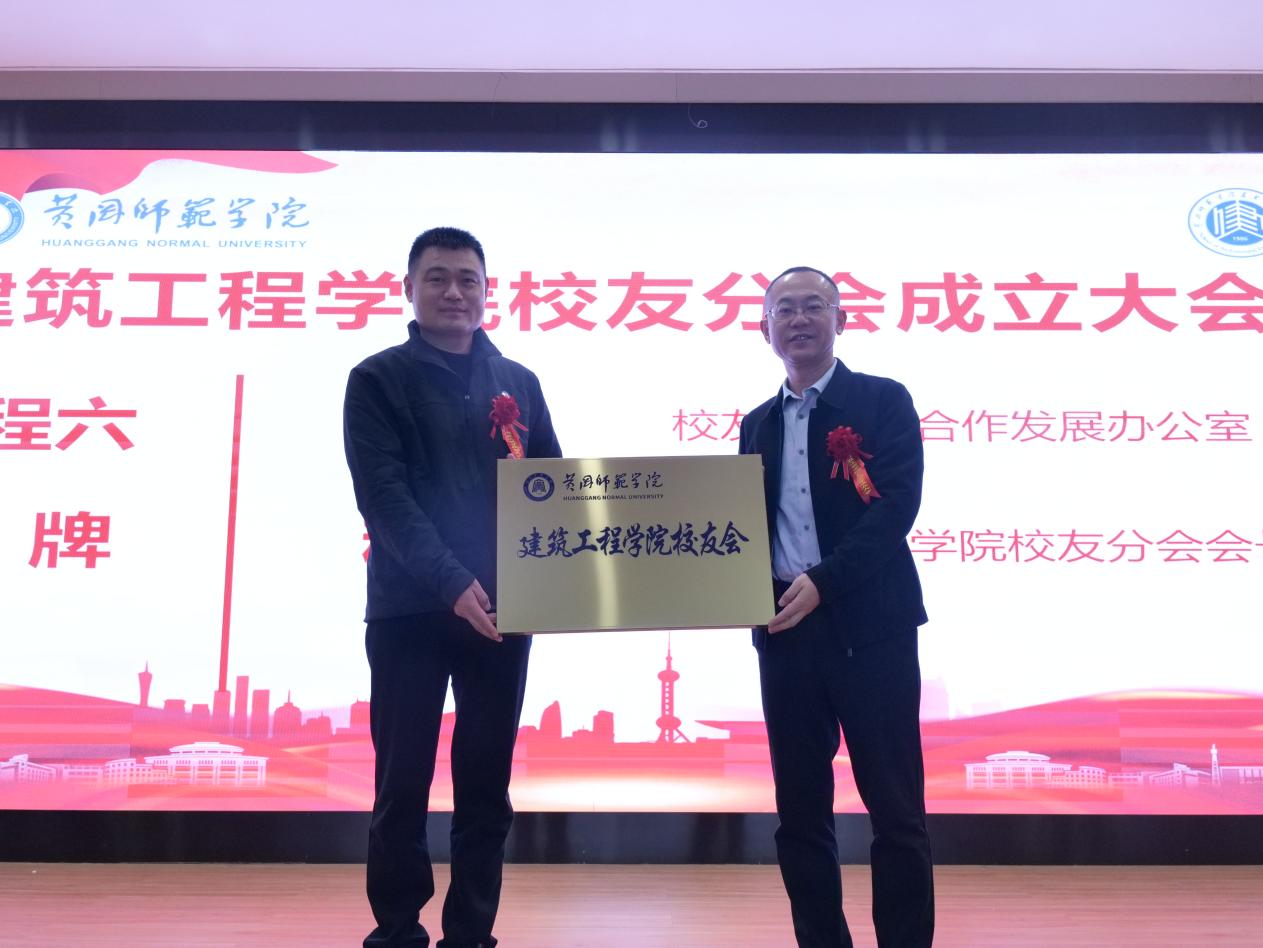 校友工作与合作发展办公室主任张良和当选会长程年坤为建筑工程学院校友分会揭牌。
