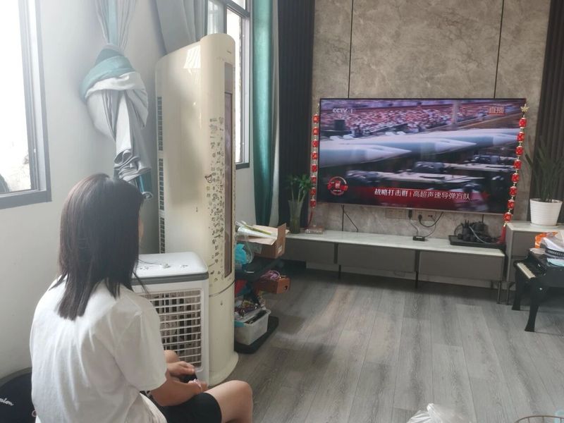此外,经过学院号召和对祖国强盛崇拜,不少未返校的同学也抽出时间和家人们观看这场盛宴。
