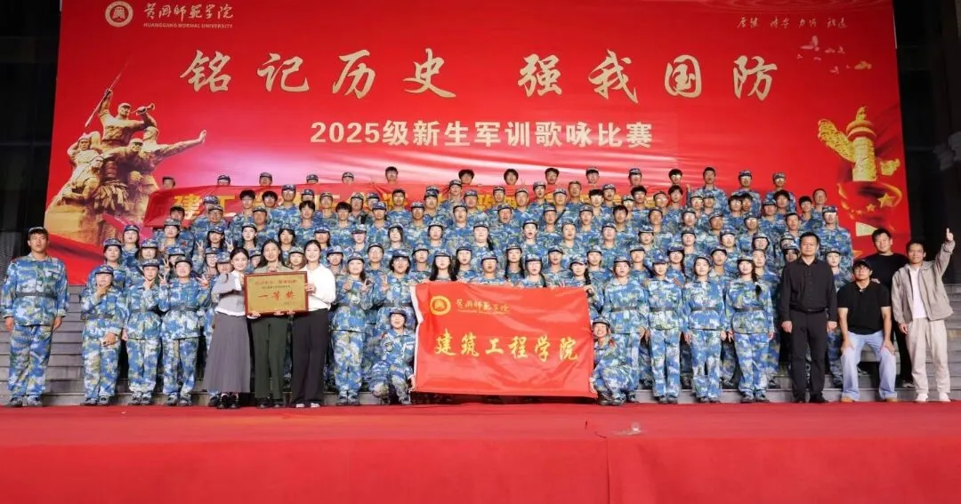 在2025级新生军训歌咏比赛的舞台上,建筑工程学院的新生们凭借嘹亮激昂的歌声、整齐划一的台风与饱满真挚的情感,从各参赛队伍中脱颖而出,最终荣获一等奖!