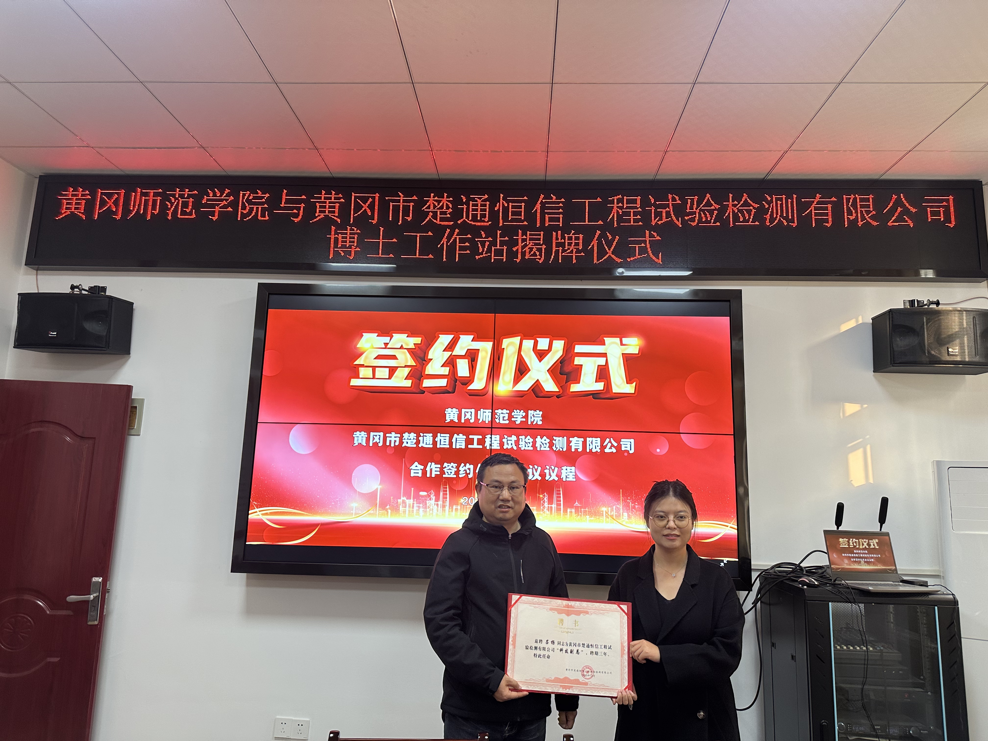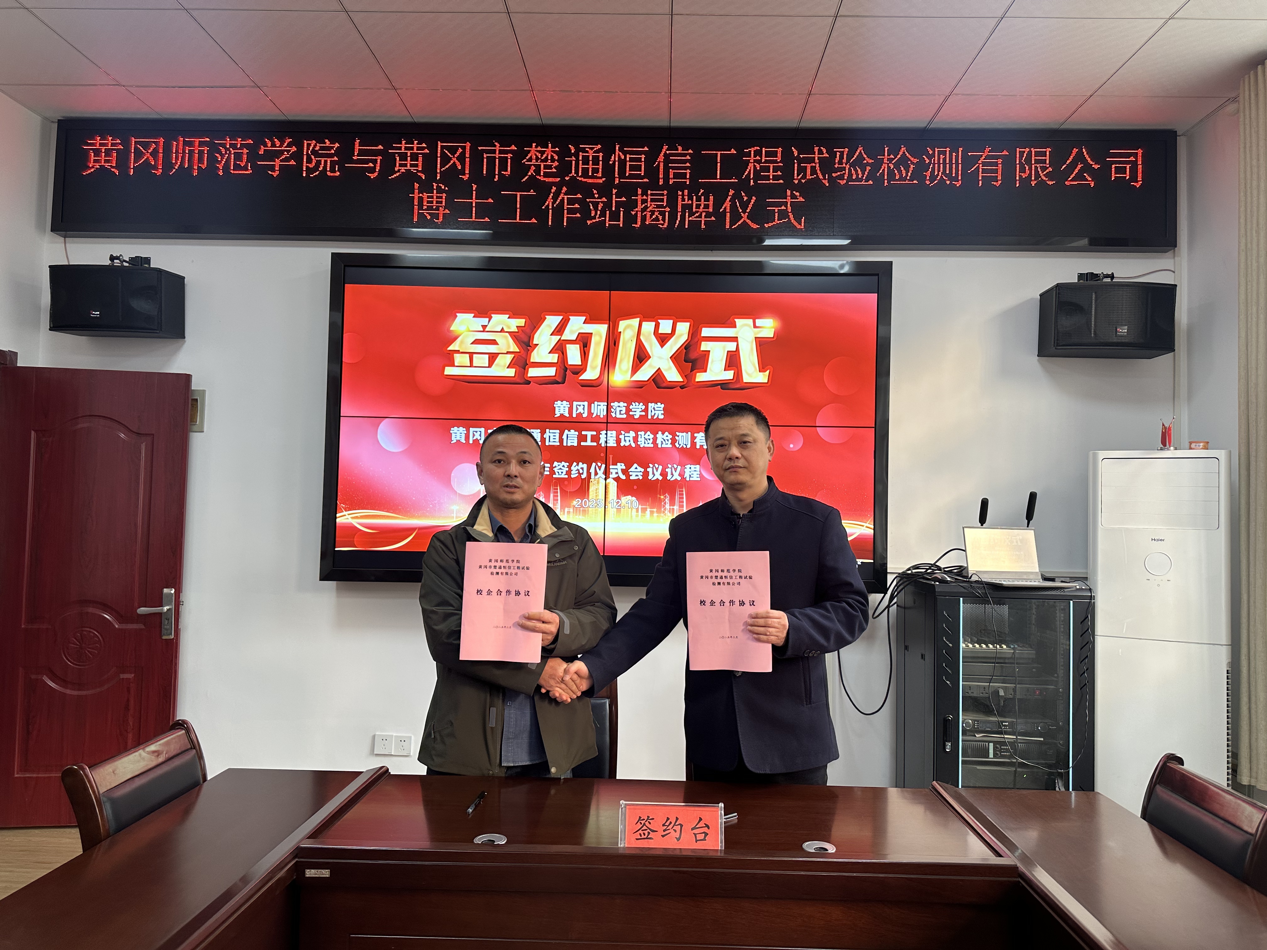 黄晓敏代表学校对黄冈市楚通恒信检测公司长期以来关心支持我校事业发展表示衷心感谢。他指出,我校将与企业在科研攻关、技术研发、成果转化、师资共享、人才培养等方面开展深度合作,期待校企双方以博士工作站为纽带,深化合作、携手并进,服务地方经济社会发展,共同书写产学研用协同创新的新篇章!