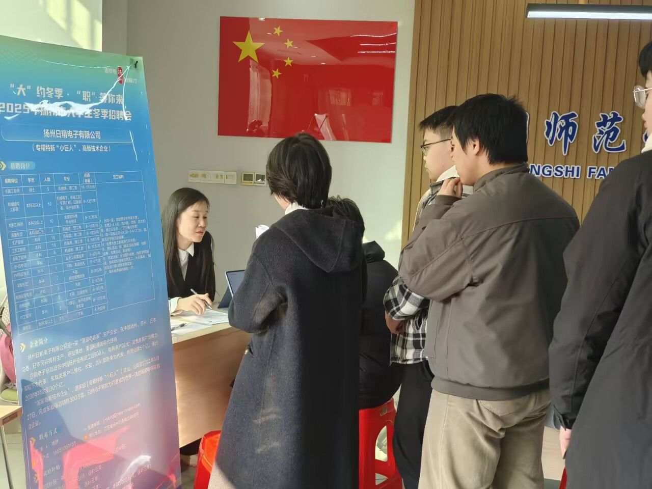 为深入贯彻落实国家关于高校毕业生就业工作的部署要求,扎实推进学校“访企拓岗促就业”专项行动。12月25日,在学校招生与就业处、扬州市人社局的大力支持下,建筑工程学院与机电与智能制造学院邀请10余家行业知名企业来校举办专场招聘会,努力拓宽2026届毕业生高质量就业渠道。招生与就业处副处长唐文杰,院党委书记钱舟扬,院长卢雪松,院党委副书记董旭出席招聘会,并就岗位能力要求、实习实践安排、职业发展路径等毕业生关心的问题,与企业招聘负责人进行了深入交流。